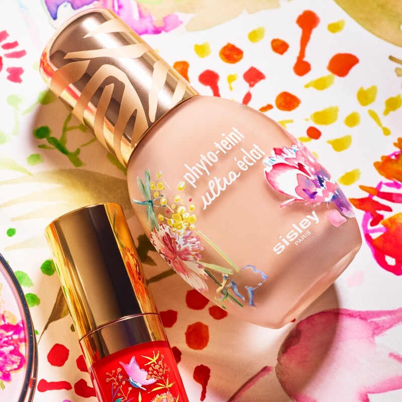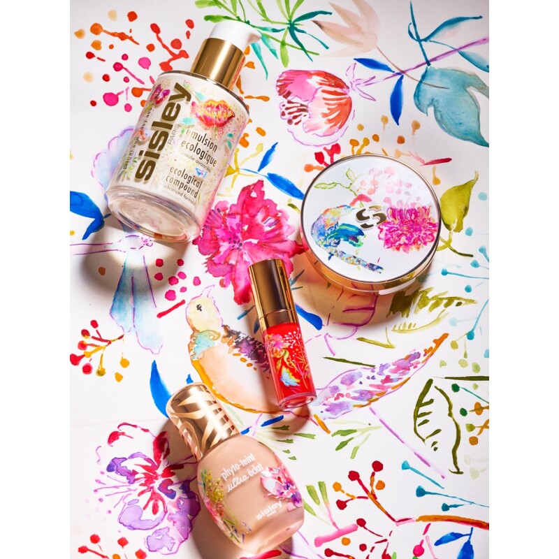 Sisley绝色牡丹系列情境图。 因此Sisley再次携手擅长自然和动物世界的波兰艺术家 Elzbieta Radziwill,在2024年推出限量版彩妆与保养品,以尊牡丹为灵感,并与大自然中的花卉、蝴蝶、鸟类交织为多彩的东方花园。