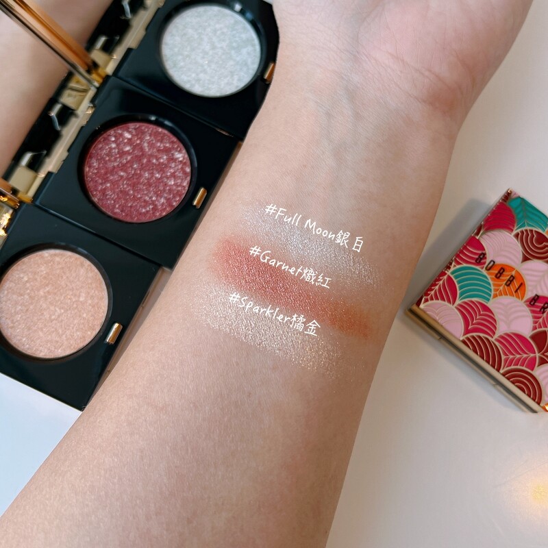 Bobbi Brown极致钻石眼影幸运光采版实擦(Photo/IG @mei_4524)。 一共推出三色:#Garnet炽红、#Sparkler橘金、#Full Moon银白。