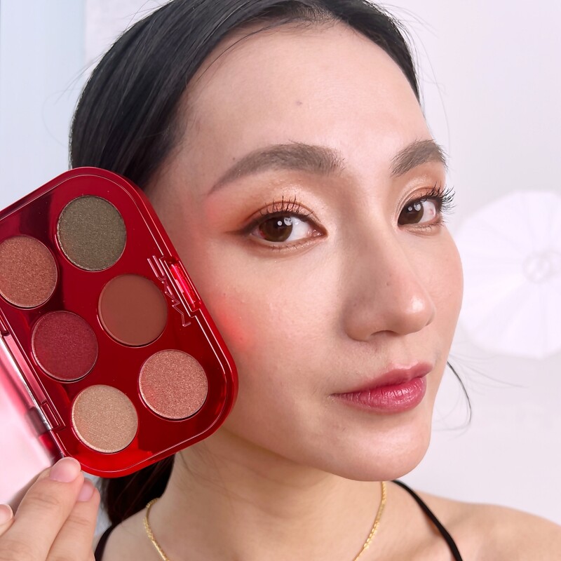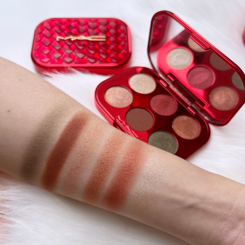 M.A.C炽爱之心6色眼影盘 ,NT1,750 1.炽爱之心6色眼影盘:揉进温暖精緻的深赤色系,搭配低调高级暖棕肉桂色以及高雅闪耀珍珠香槟色,再以神秘幽静的黑墨绿加强眼神。